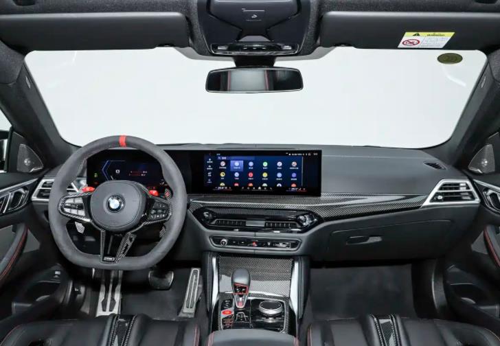 内饰方面,新车采用大面积黑色系风格,并加入了碳纤维材质,三辐平底式方向盘采用Alcantara/翻毛皮材质,及红色的回正标识。其还采用了12.3英寸液晶仪表+14.9英寸中控屏的双联屏组合。前排M碳纤维桶形座椅采用了专属的红黑色搭配,且头枕处还增加了红色纽北赛道图的刺绣,彰显出其独特的氛围感。